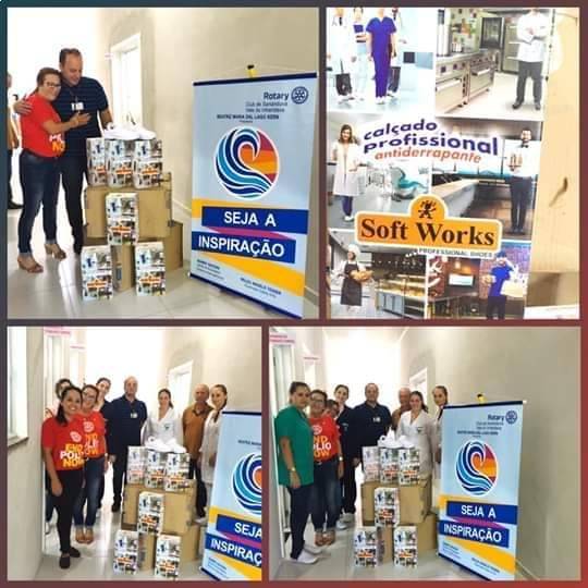 A PRESIDENTE DO ROTARY CLUB SANANDUVA VALE DO INHANDAVA BEATRIZ MARIA DAL LAGO KERN, ACOMPANHADA DE ALGUNS ASSOCIADOS FEZ DOAÇÃO DE CALÇADOS ANTIDERRAPANTES PARA OS FUNCIONÁRIOS DO HOSPITA SÃO JOÃO. .. ROTARY EM AÇÃO! USANDO A INSPIRAÇÃO PARA O SERVIR!